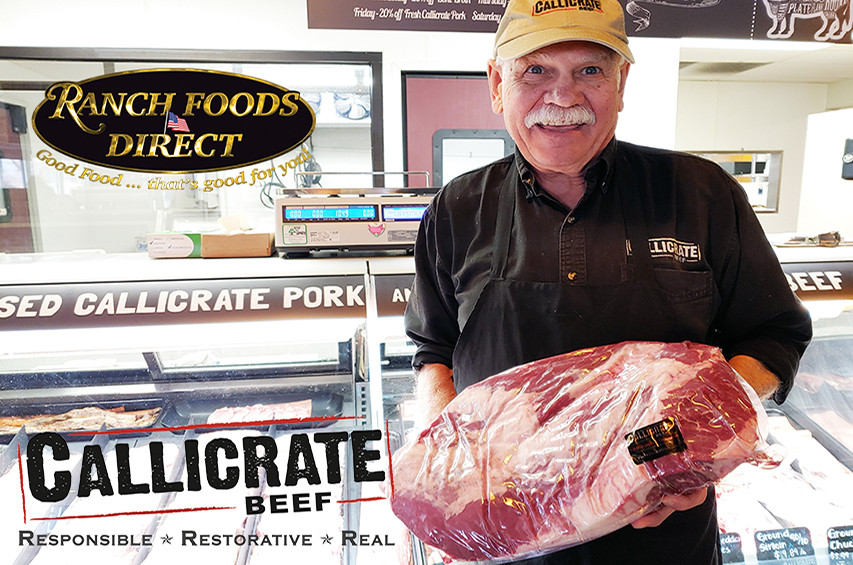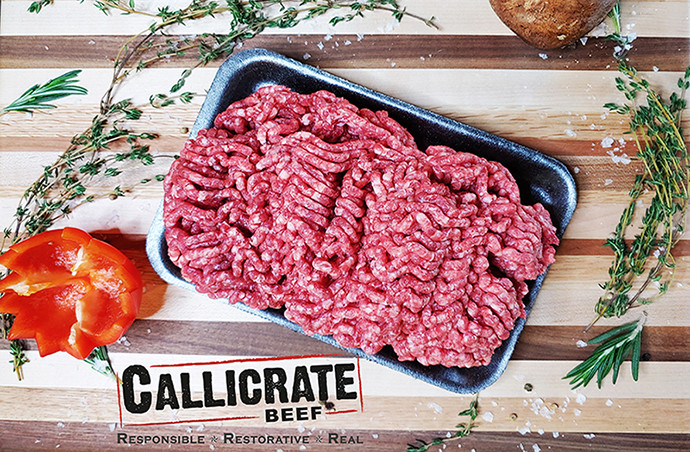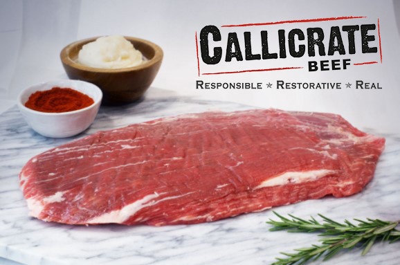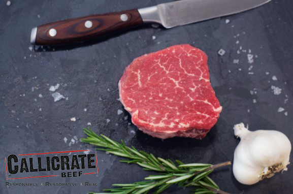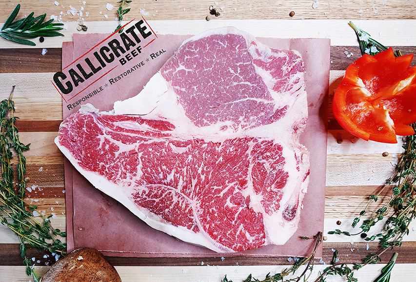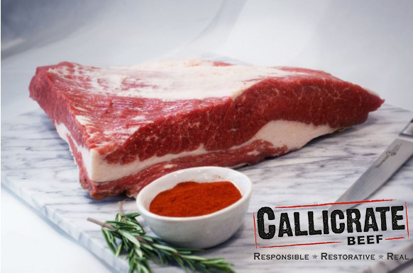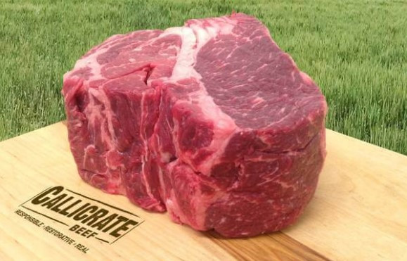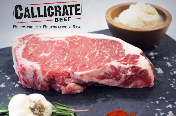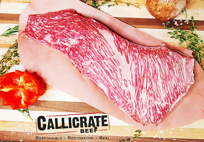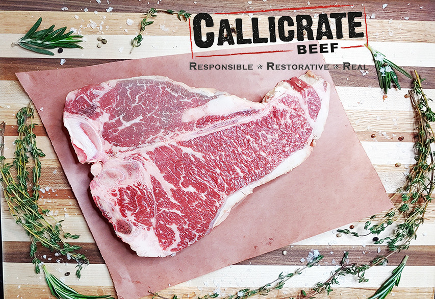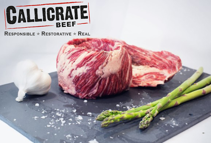 Callicrate Beef's half-Angus, half-Wagyu beef is pasture-raised before being finished on a non-GMO grain mix for 120 days. The result is fantastically marbled, delicious, and environmentally friendly beef.